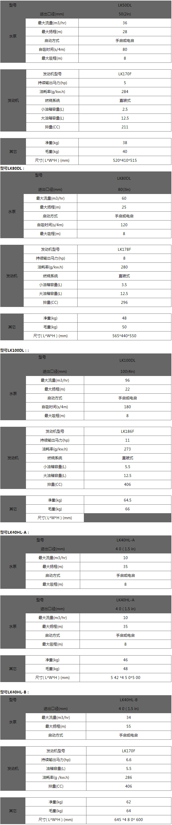 單缸風冷柴油自吸水泵技術(shù)參數(shù):